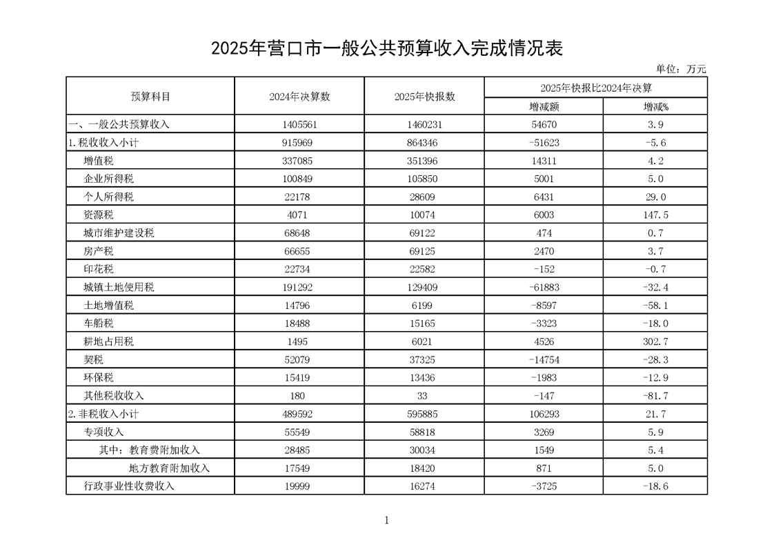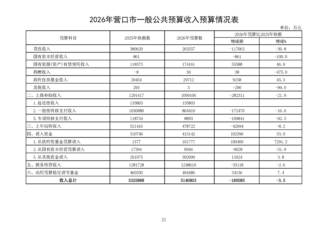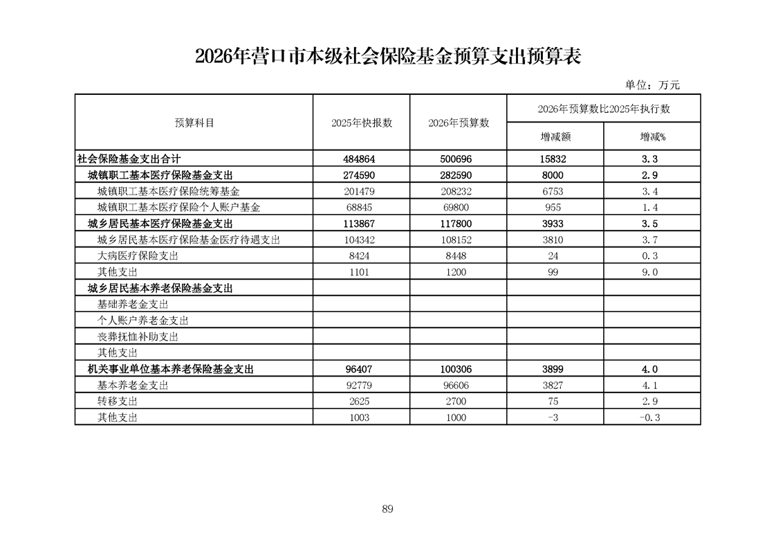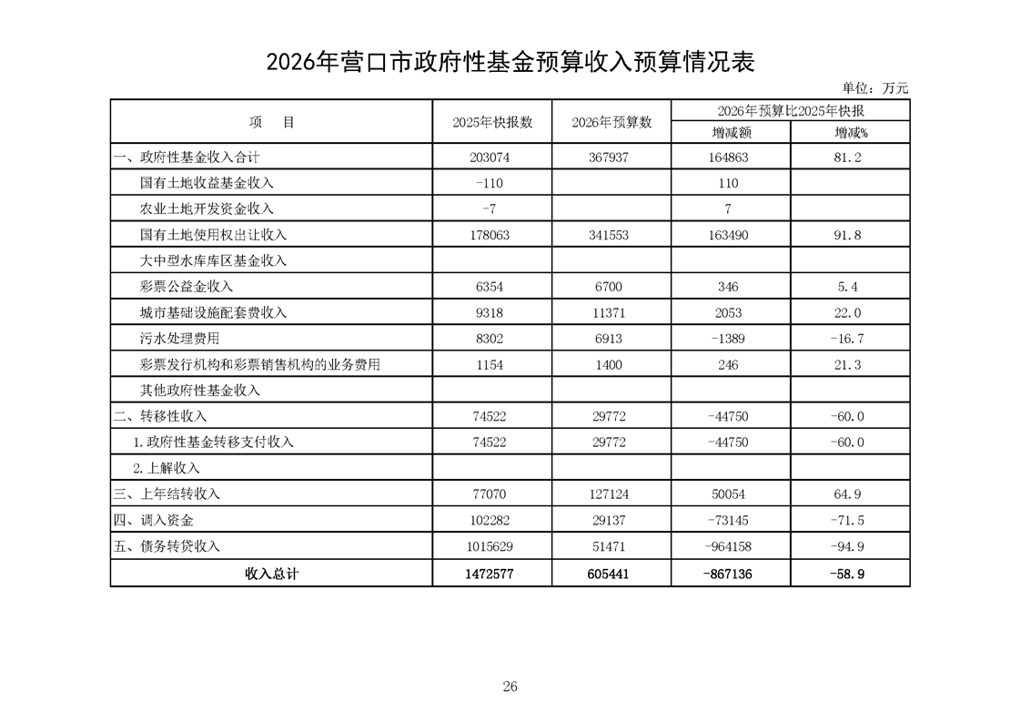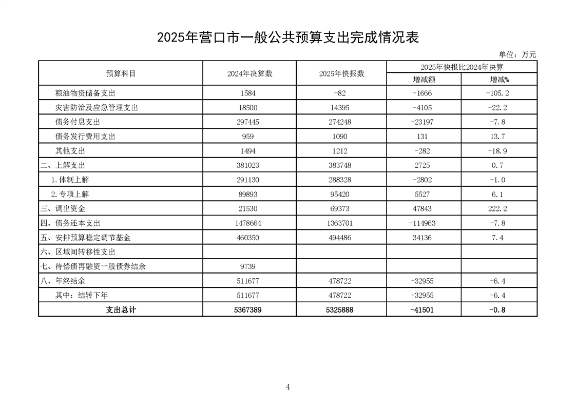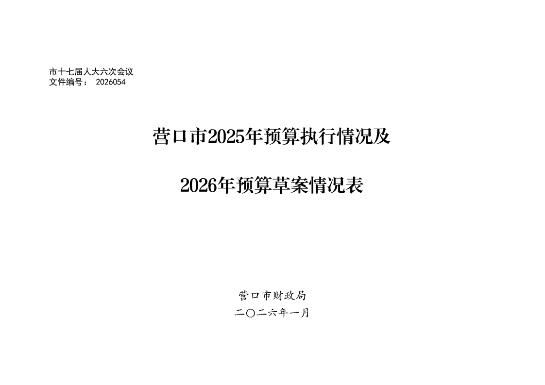 营口市2025年预算执行情况及2026年预算草案情况表