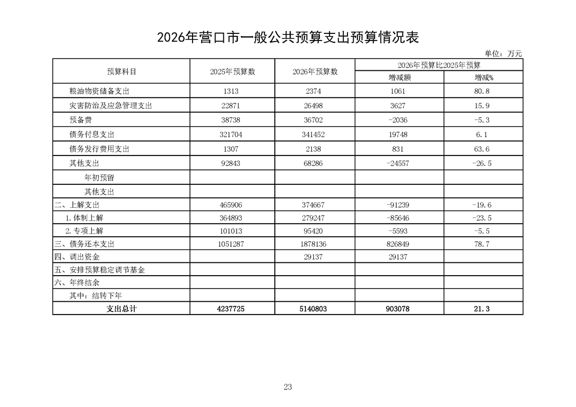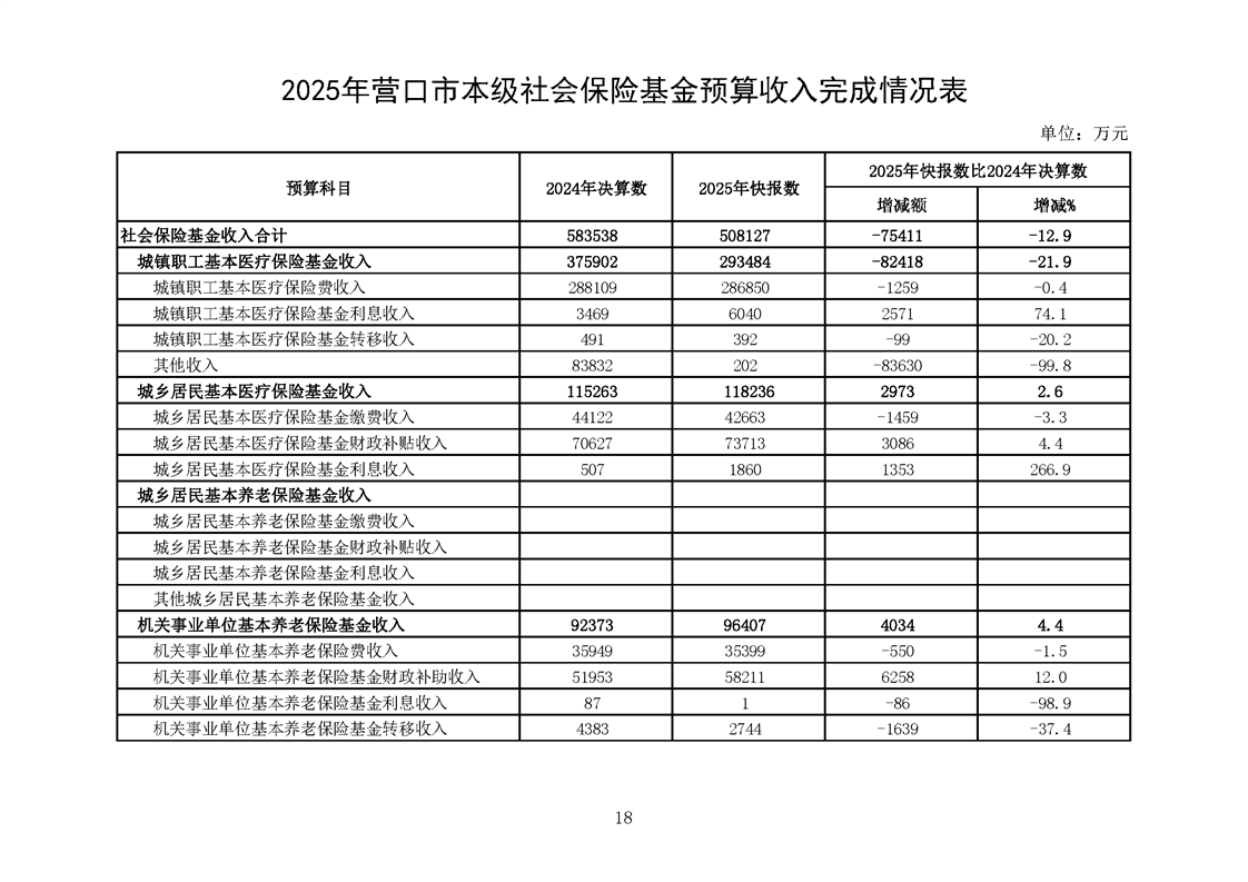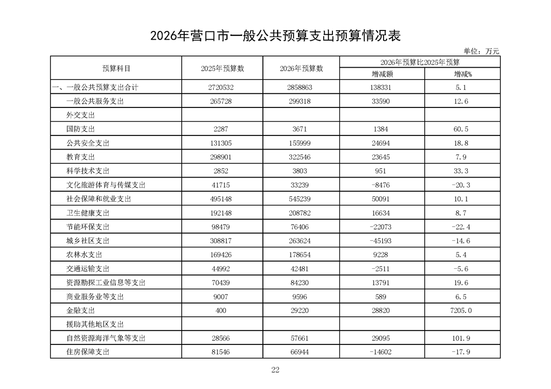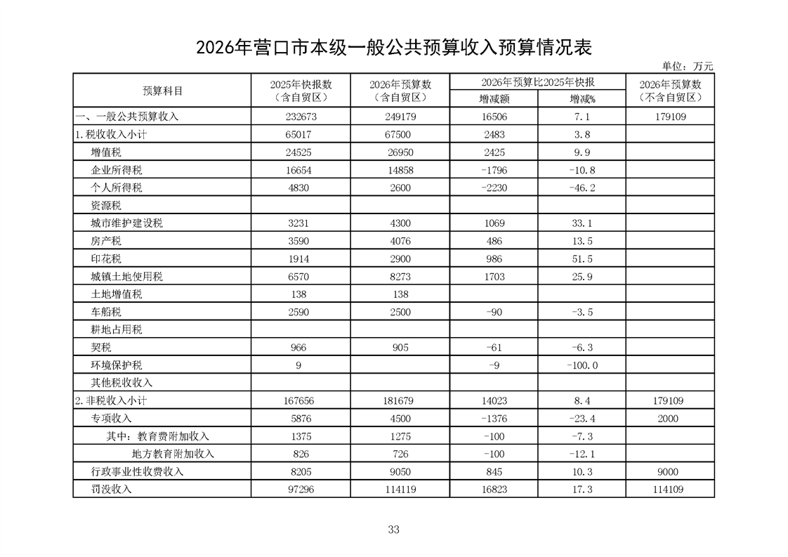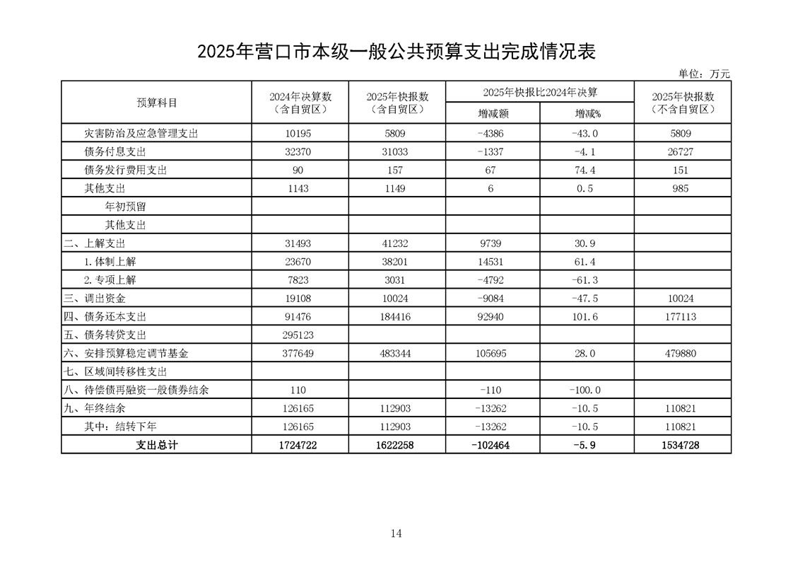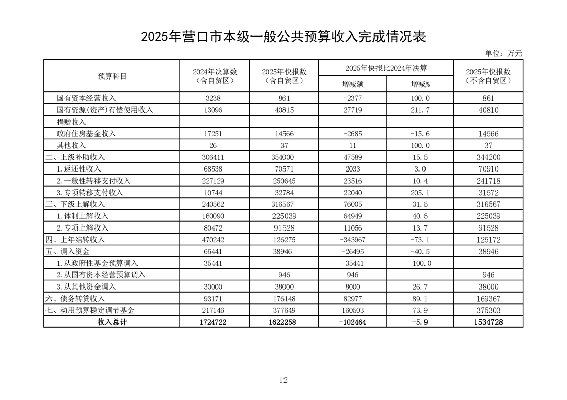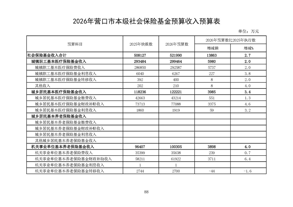 营口市2025年预算执行情况及2026年预算草案情况表