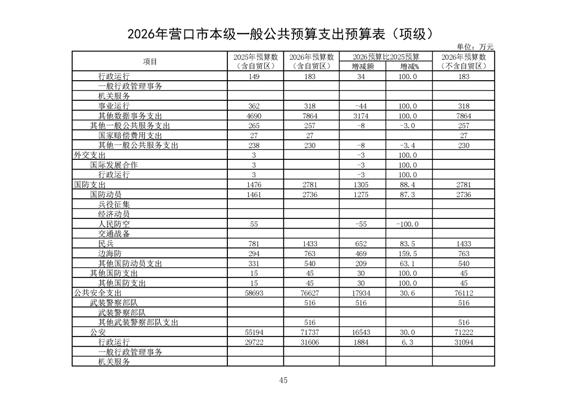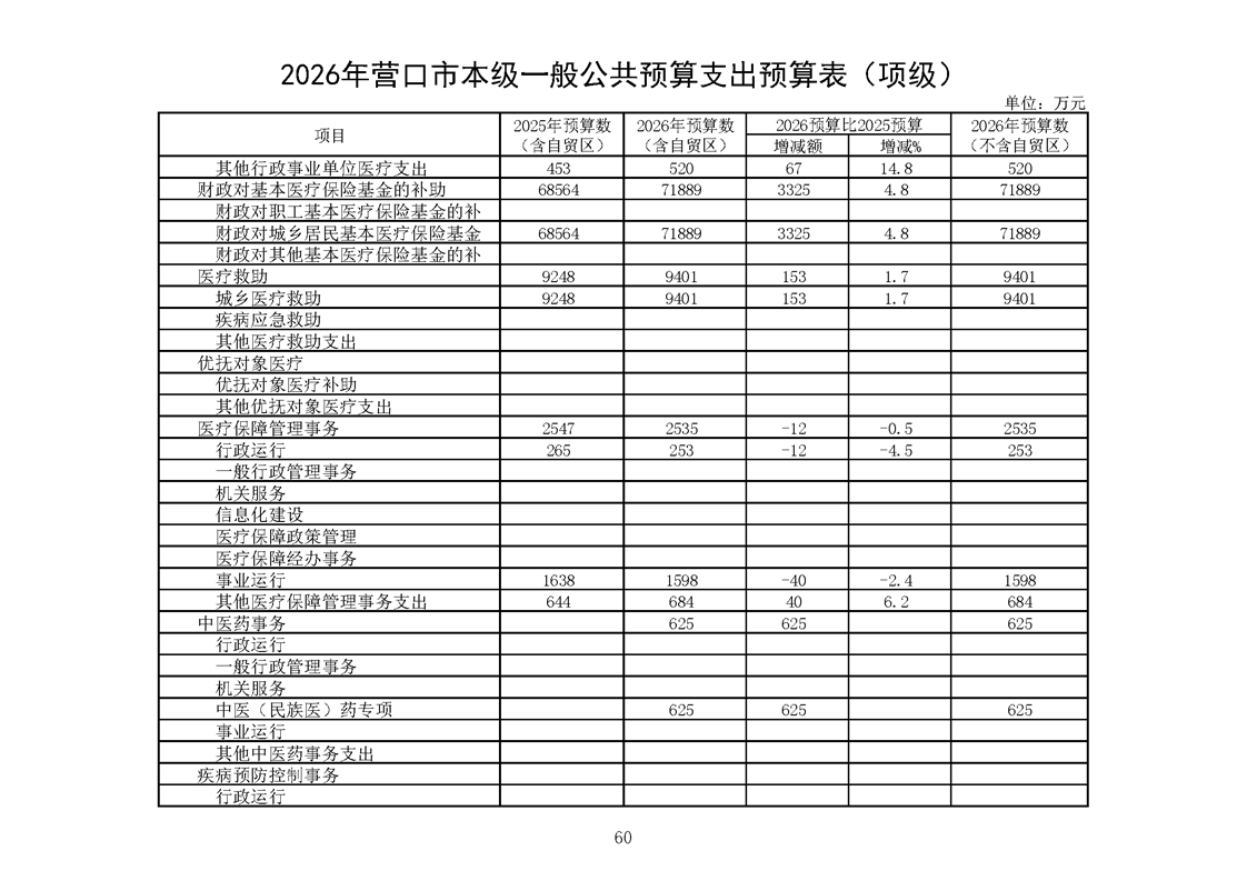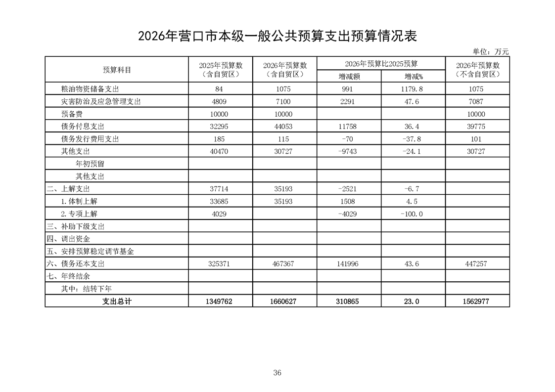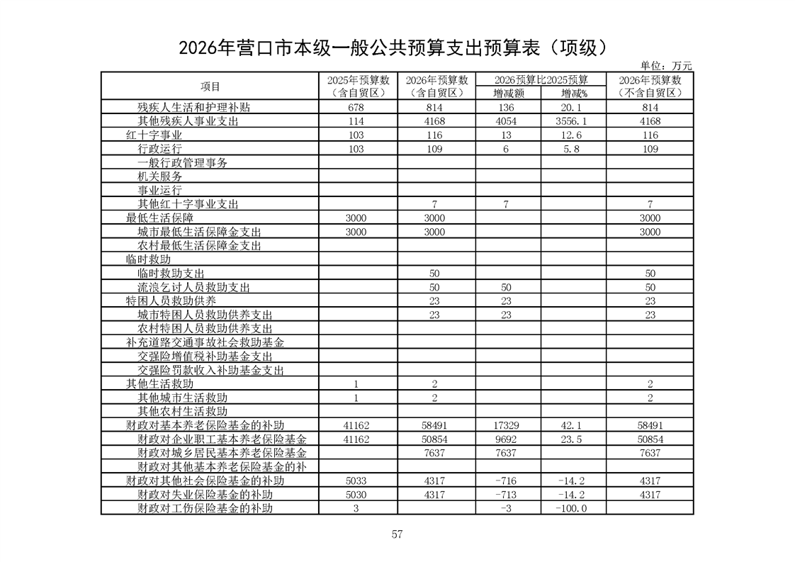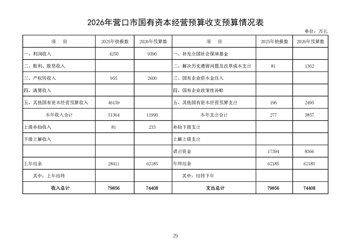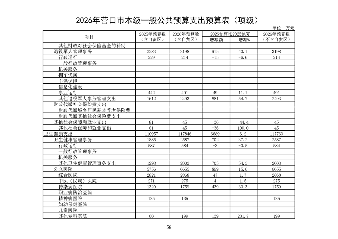 营口市2025年预算执行情况及2026年预算草案情况表