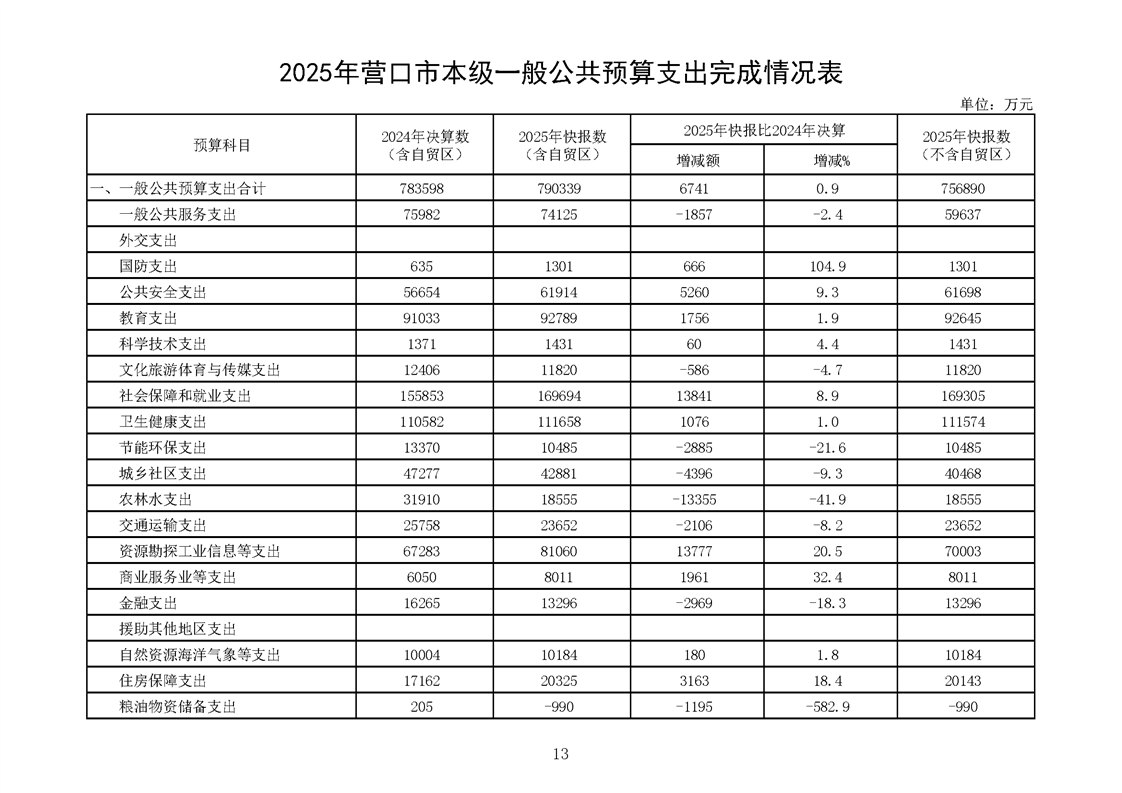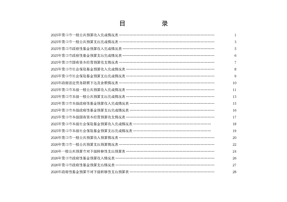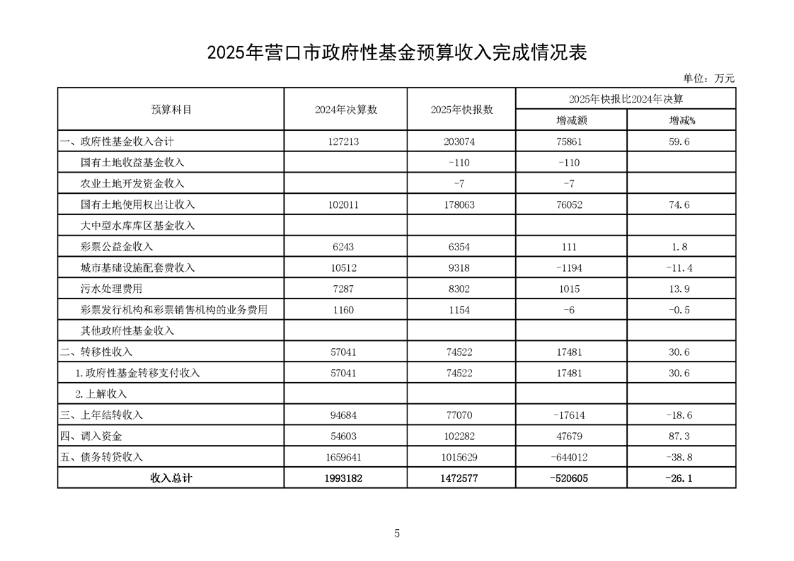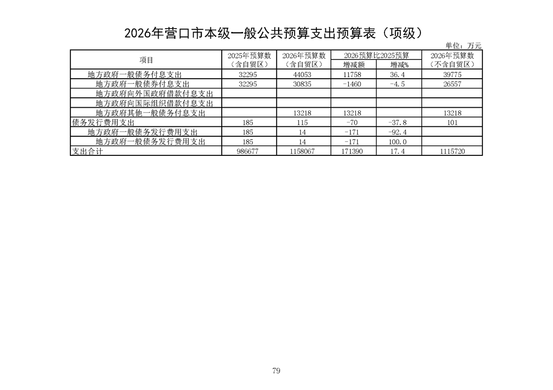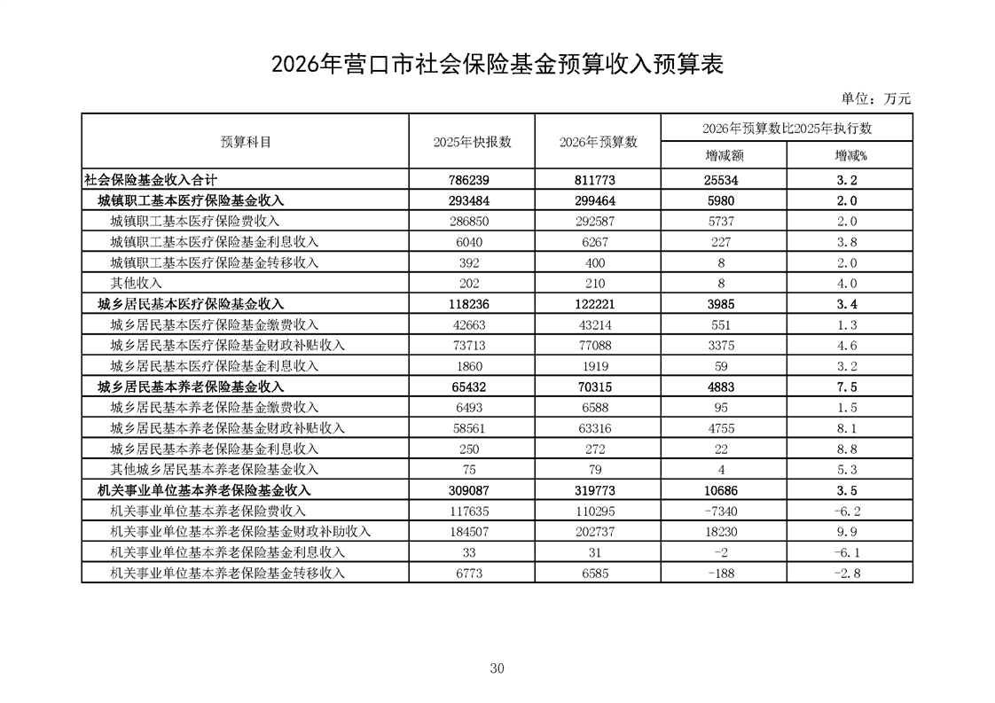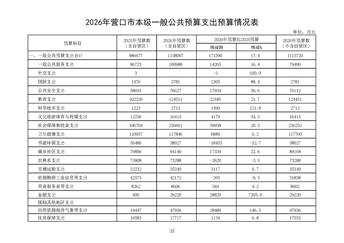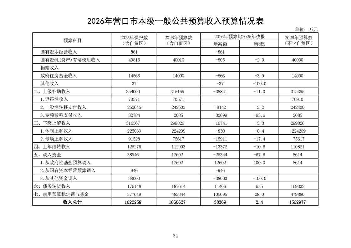 营口市2025年预算执行情况及2026年预算草案情况表
