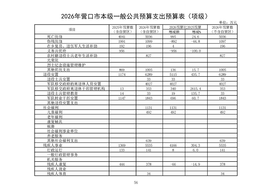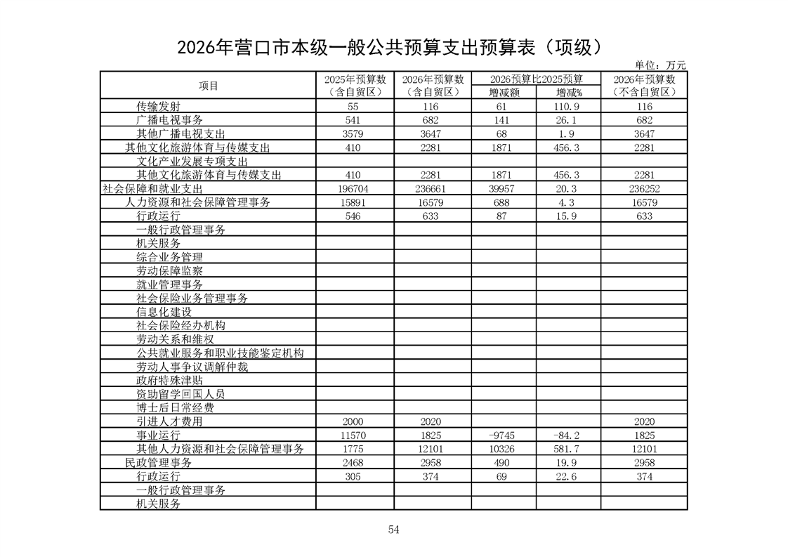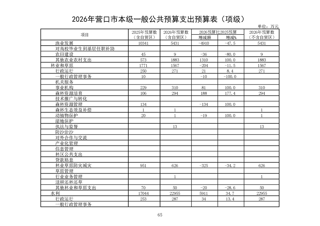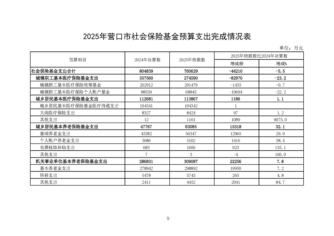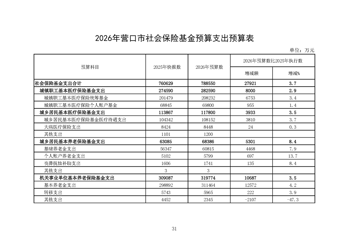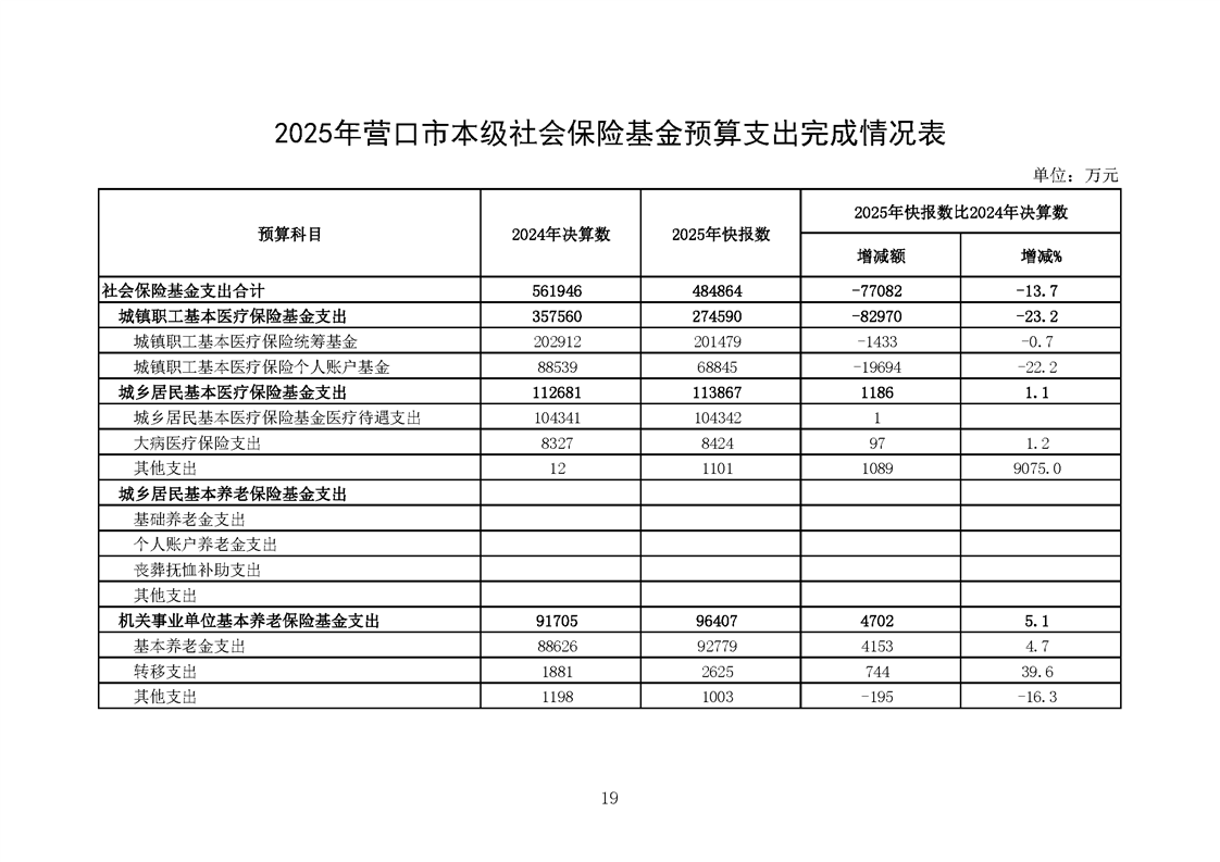 营口市2025年预算执行情况及2026年预算草案情况表