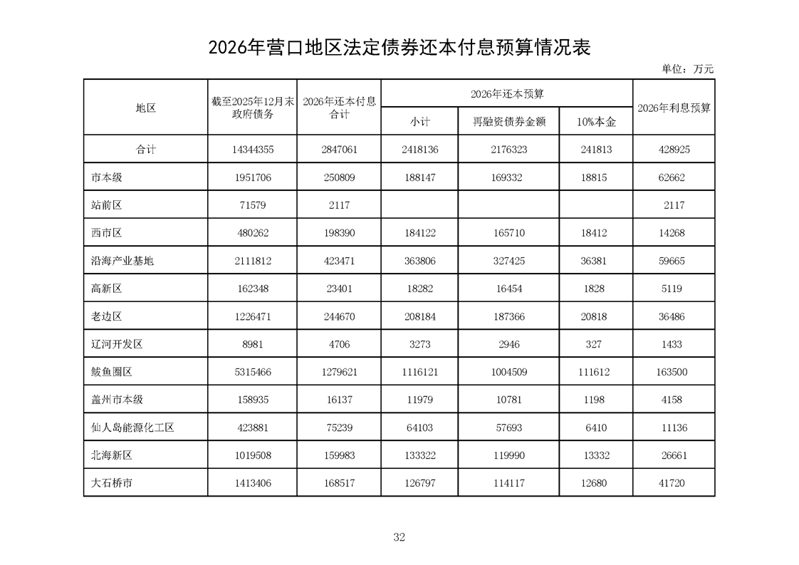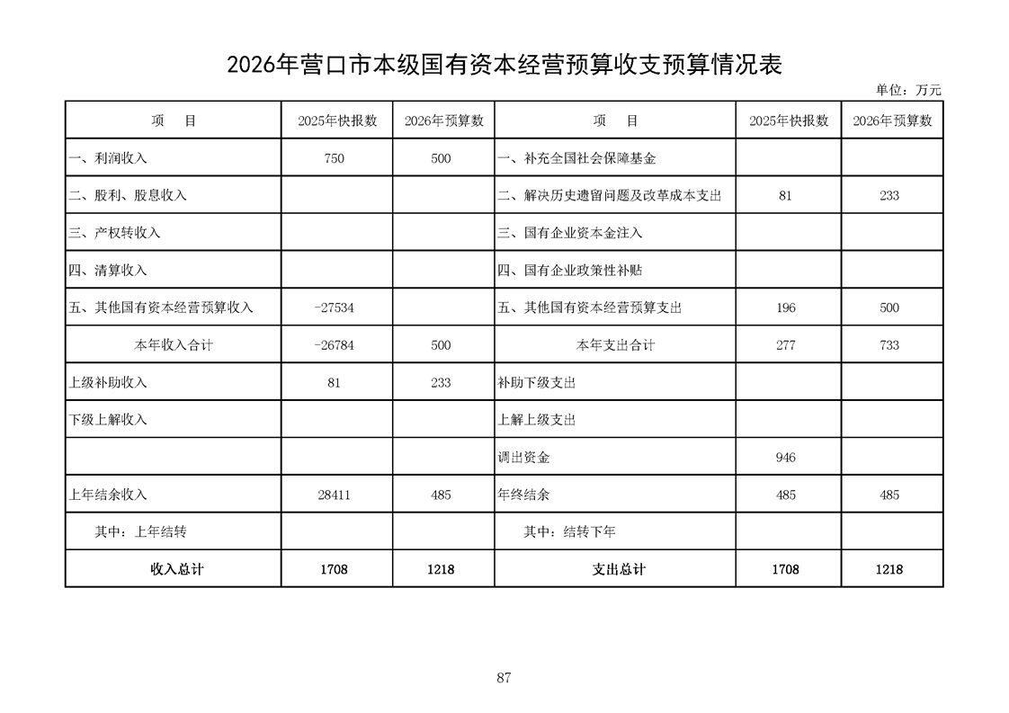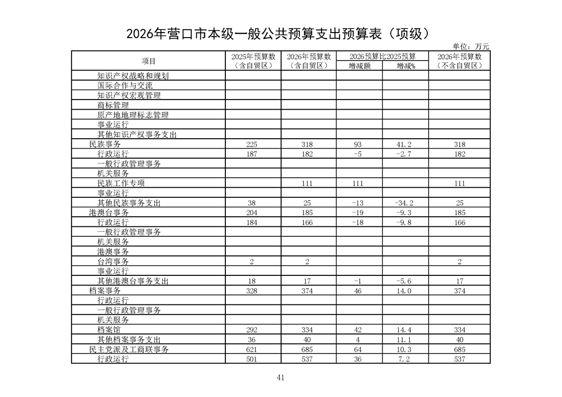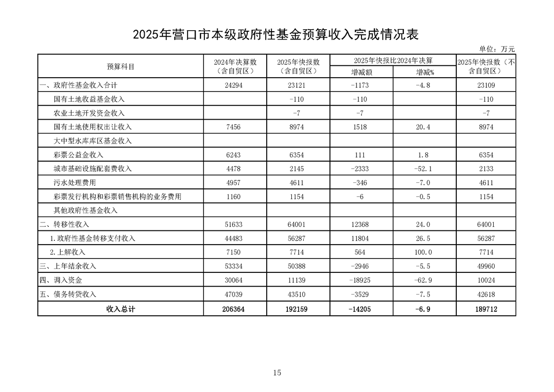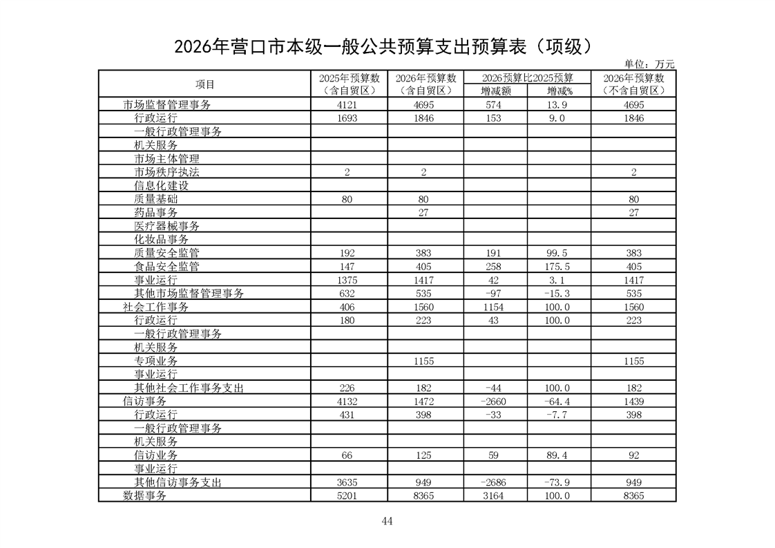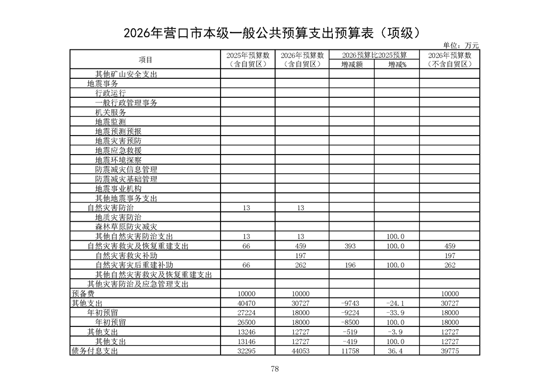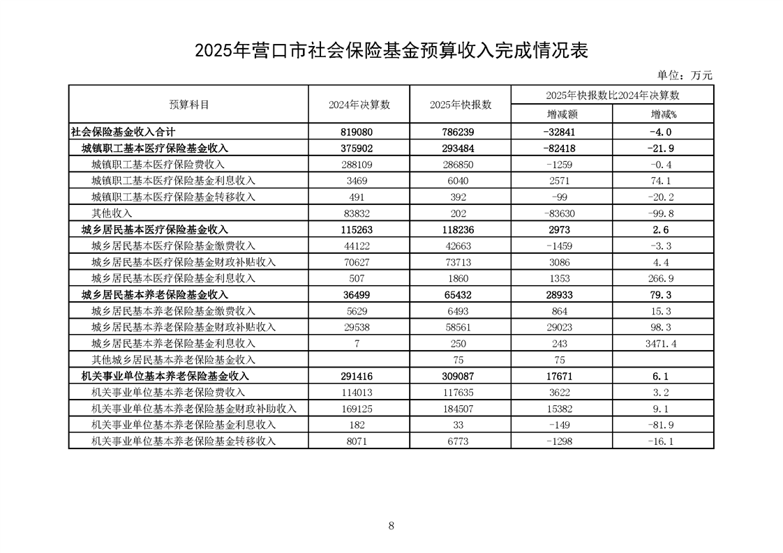营口市2025年预算执行情况及2026年预算草案情况表