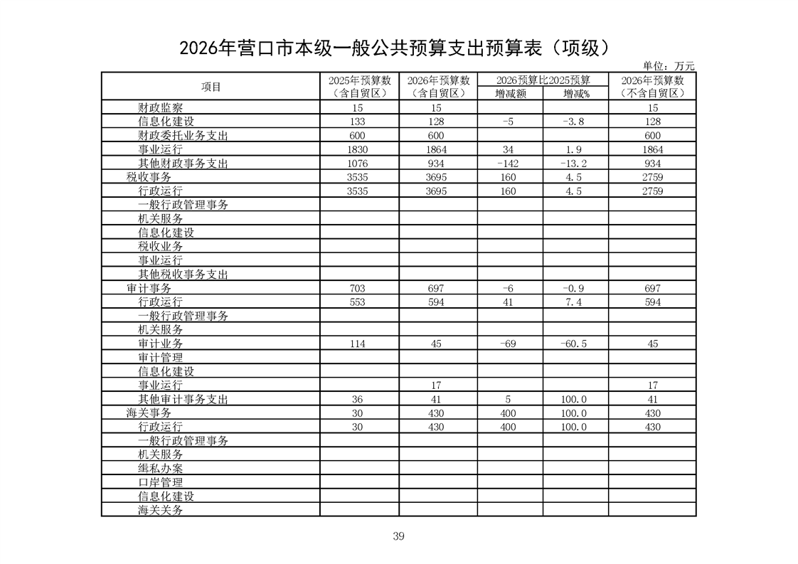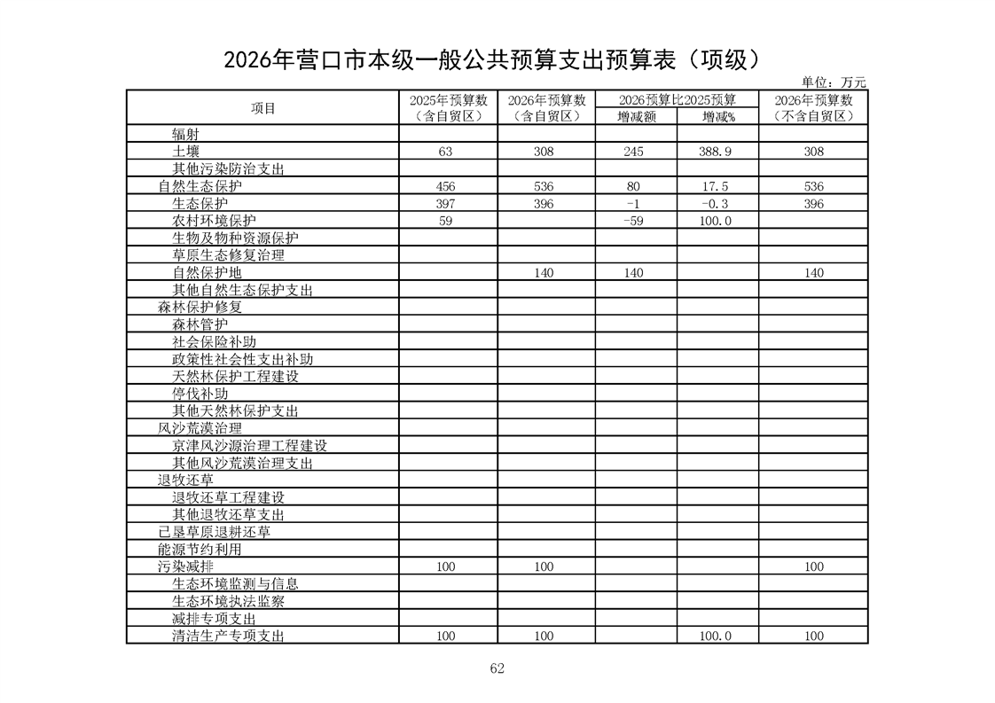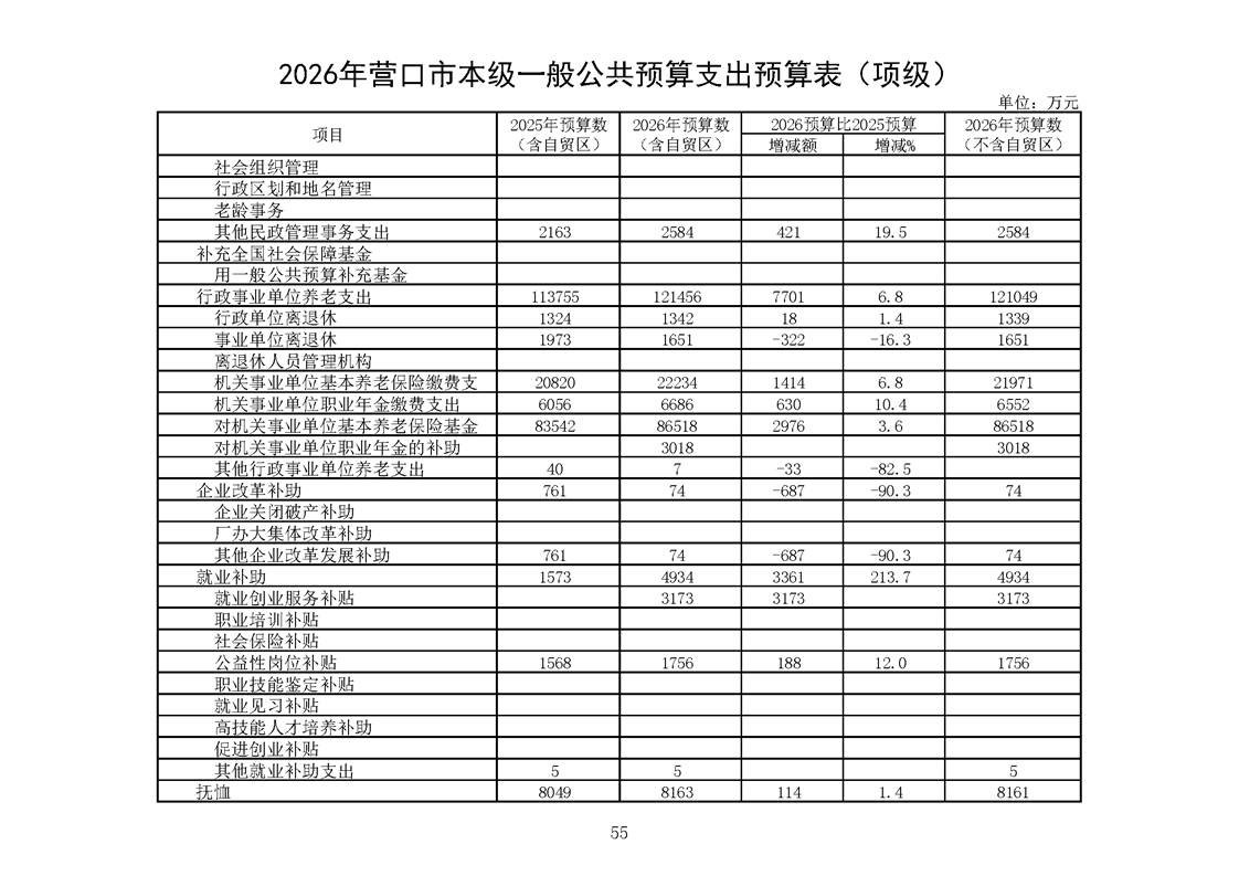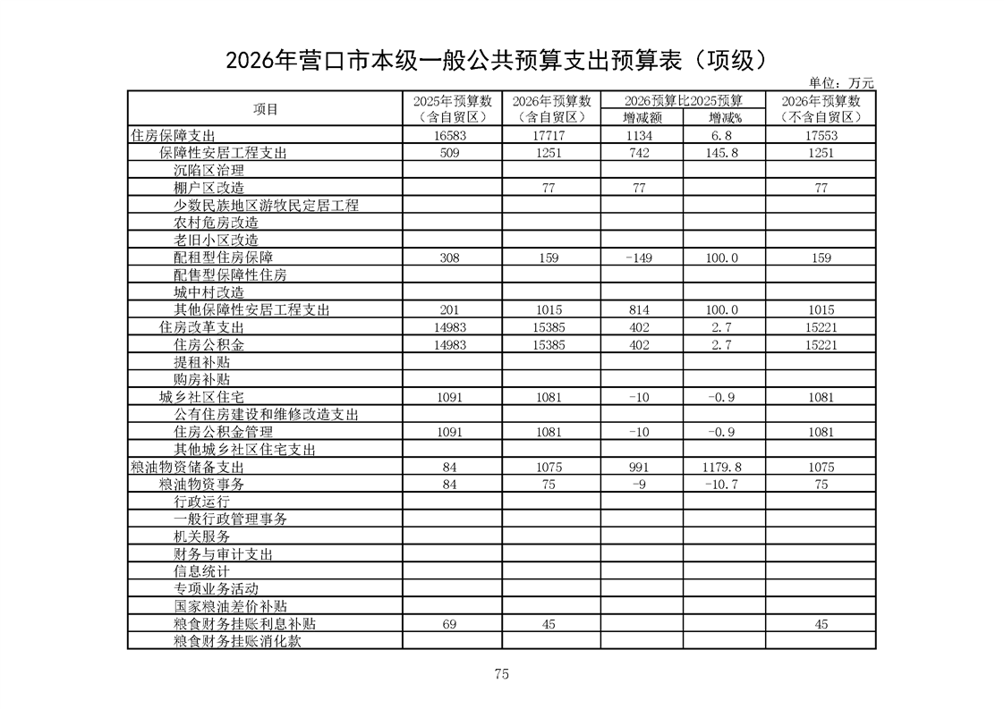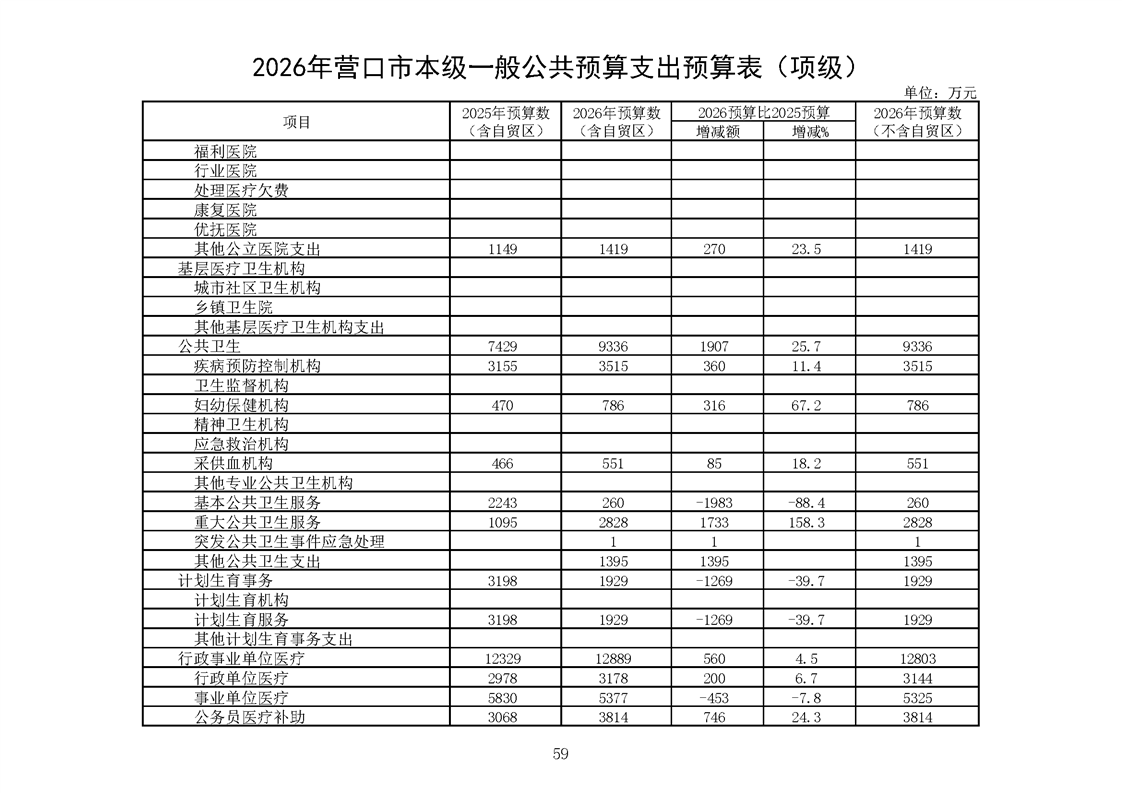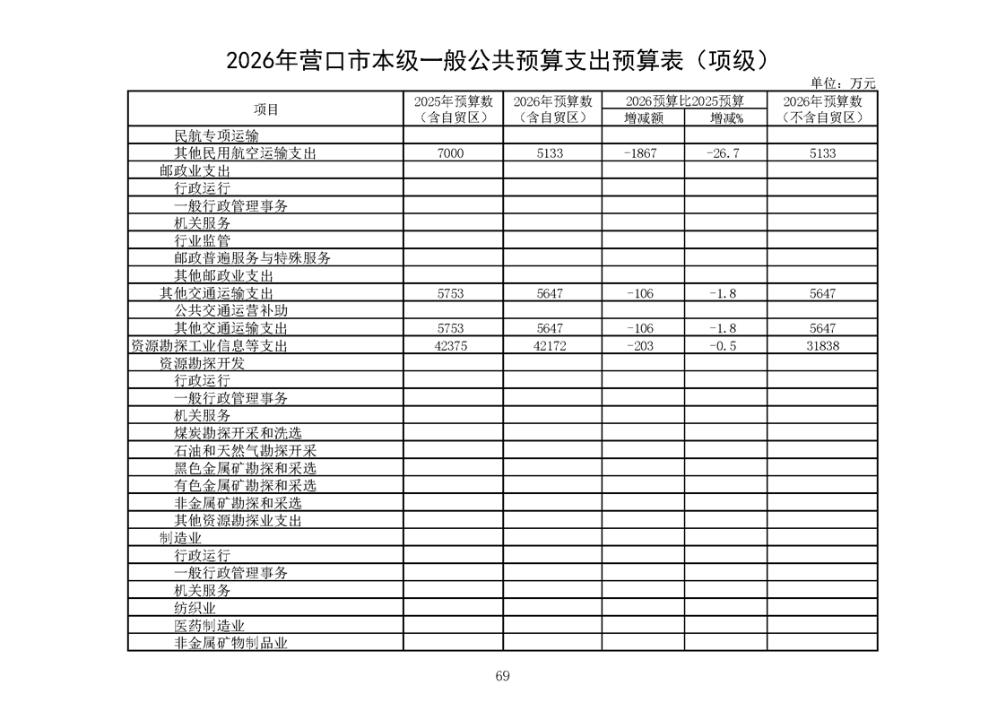 营口市2025年预算执行情况及2026年预算草案情况表