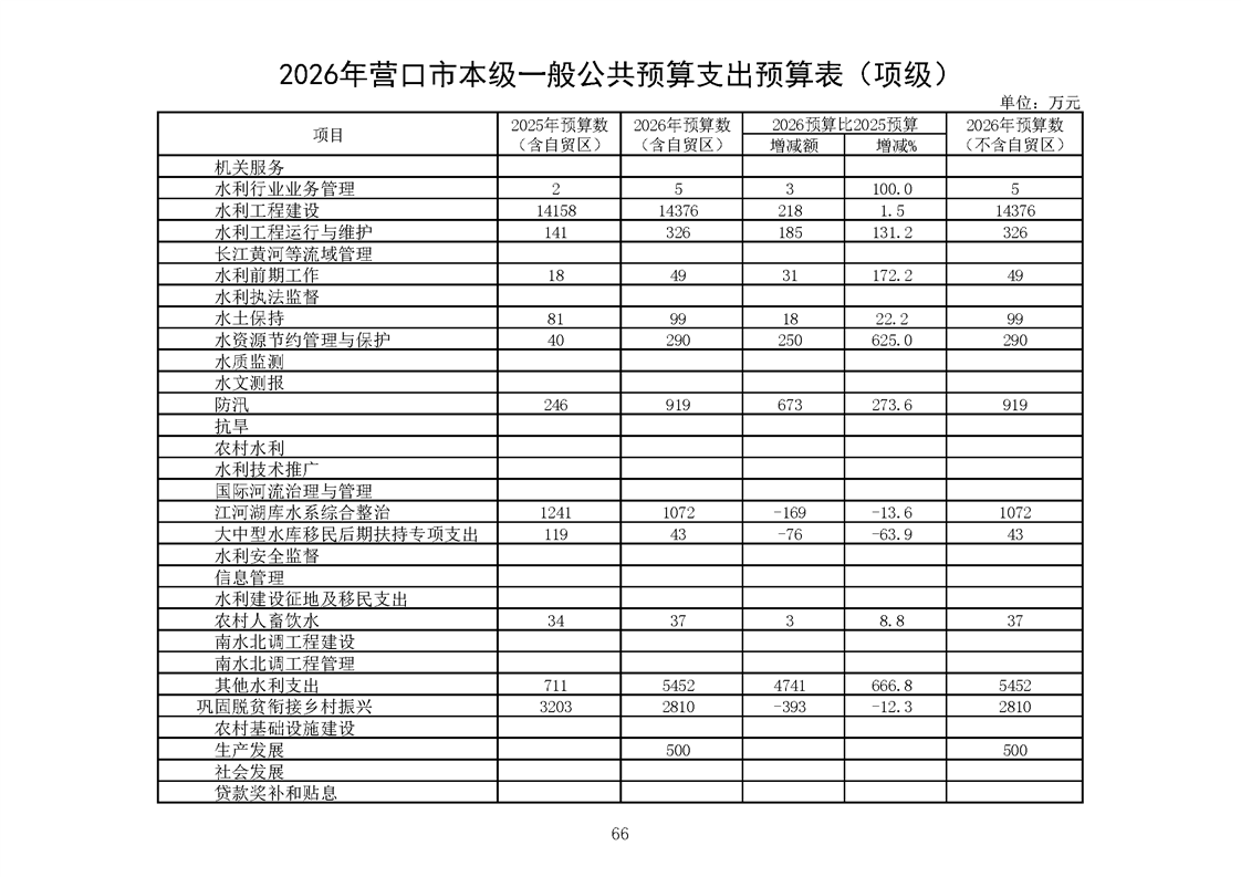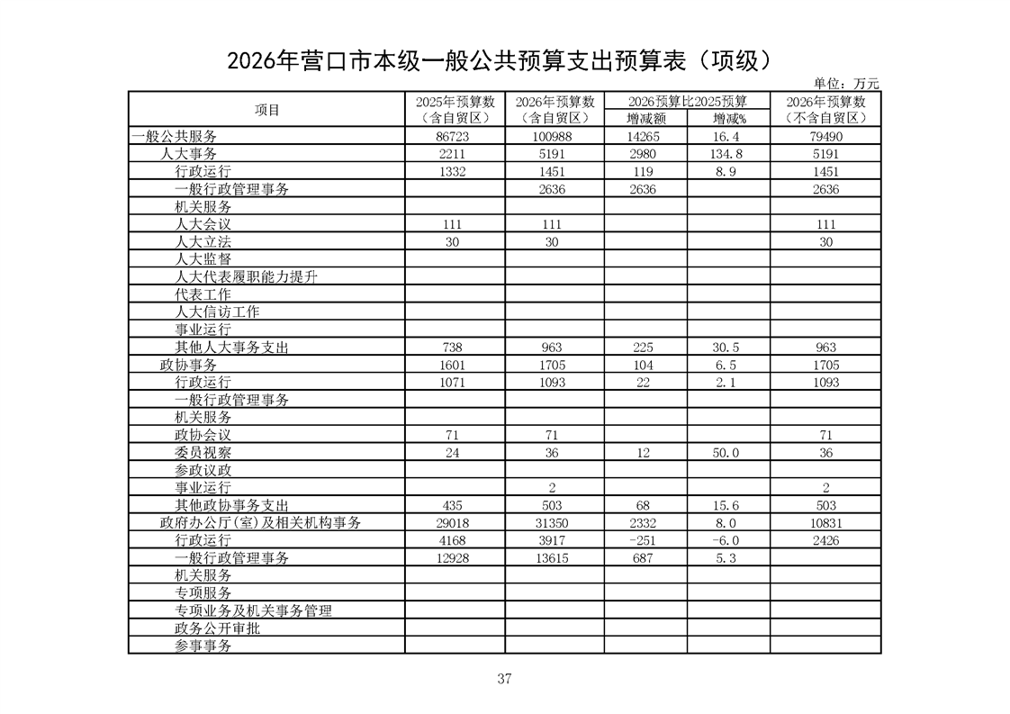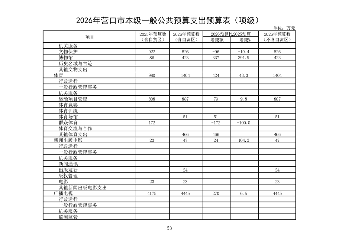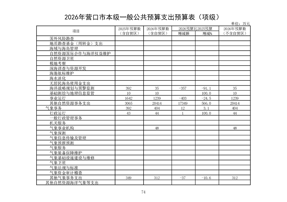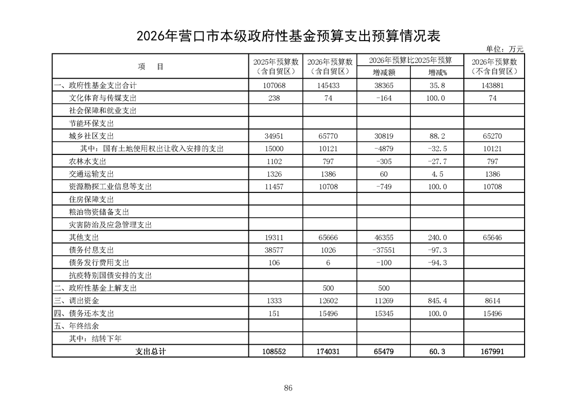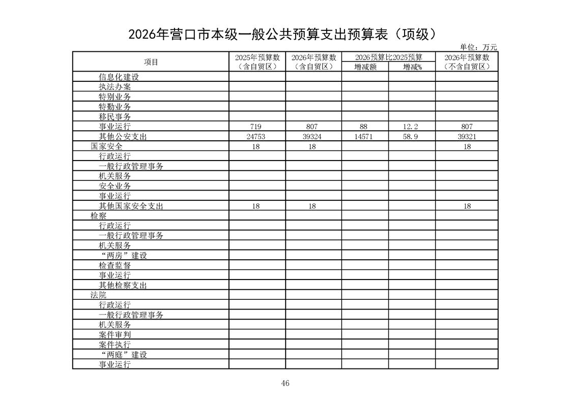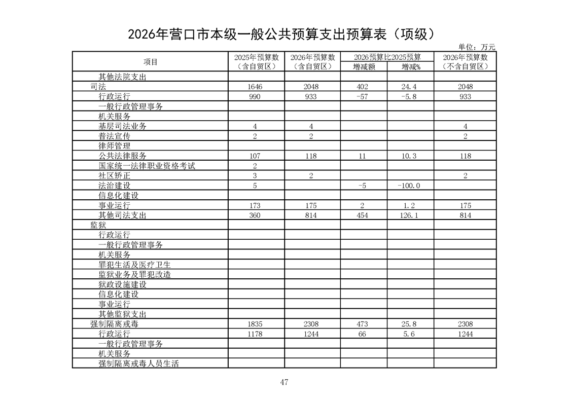 营口市2025年预算执行情况及2026年预算草案情况表