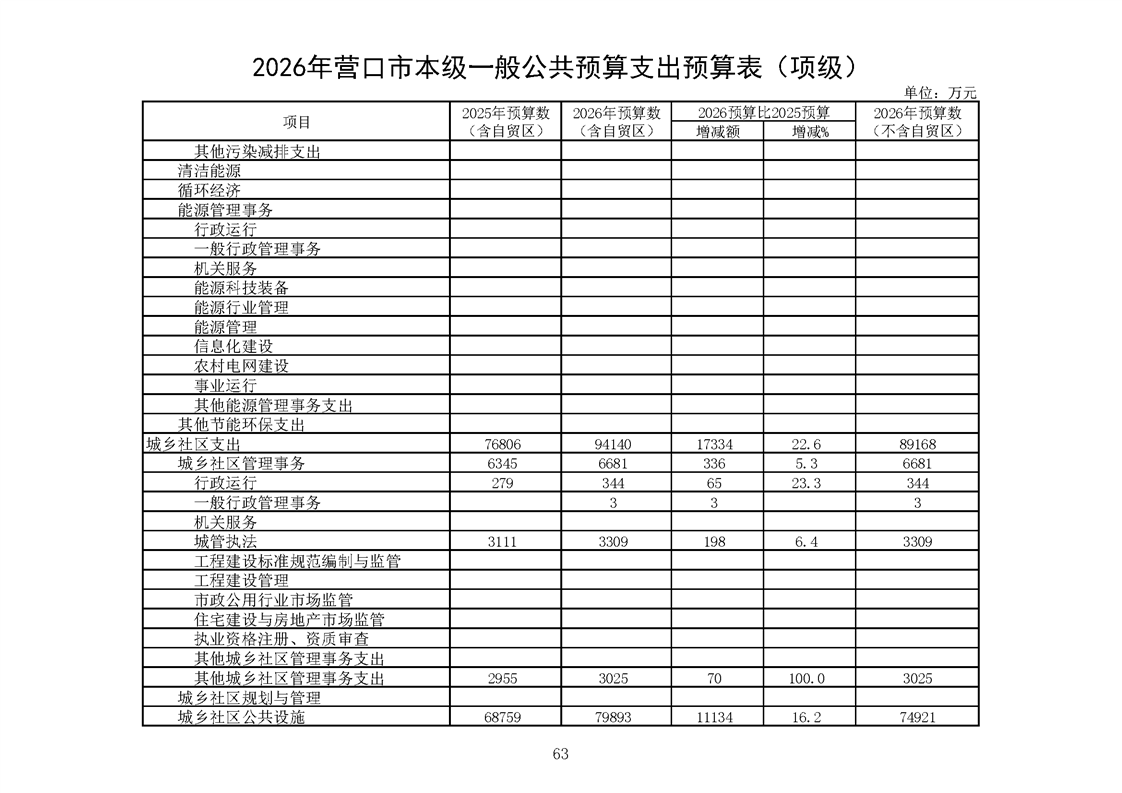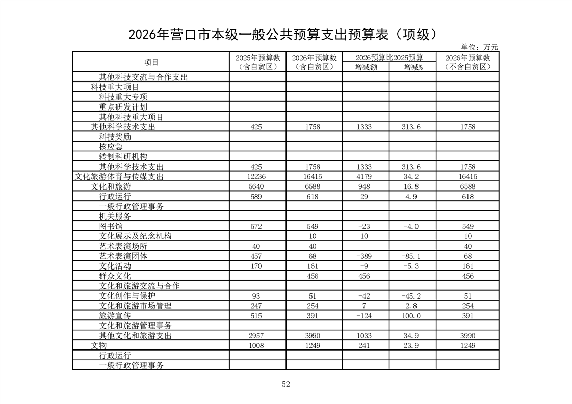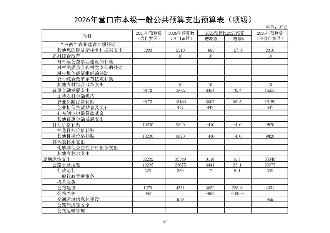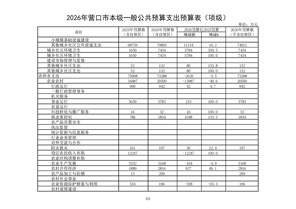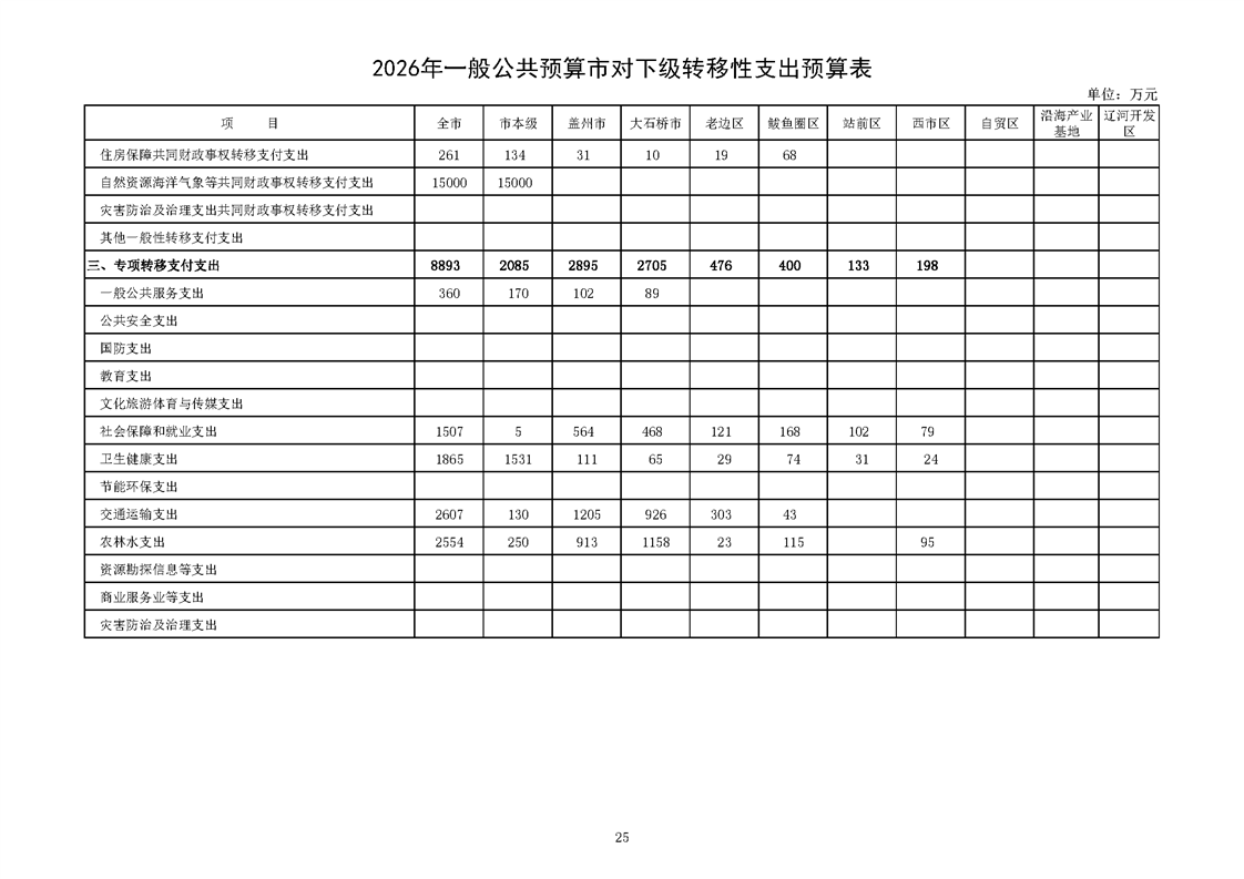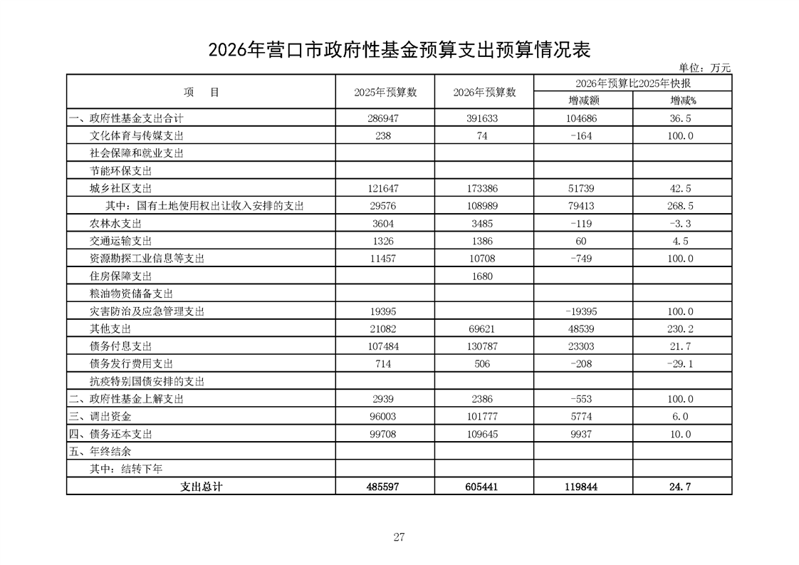 营口市2025年预算执行情况及2026年预算草案情况表