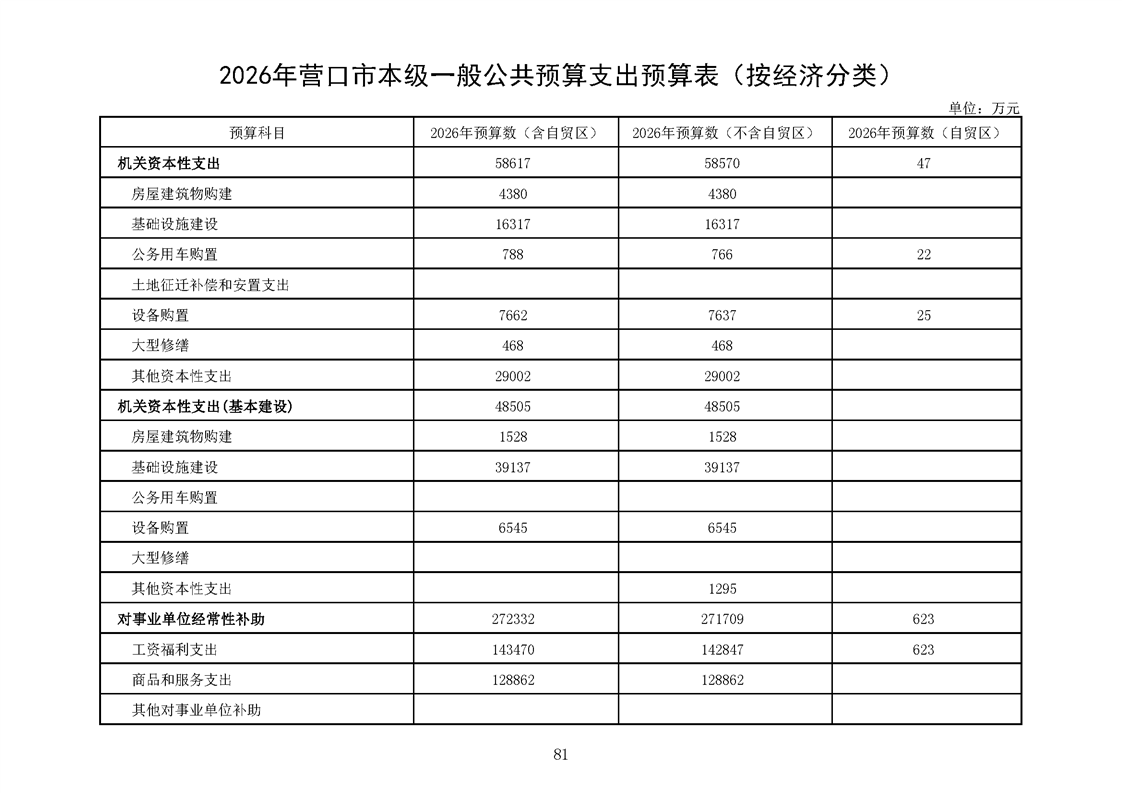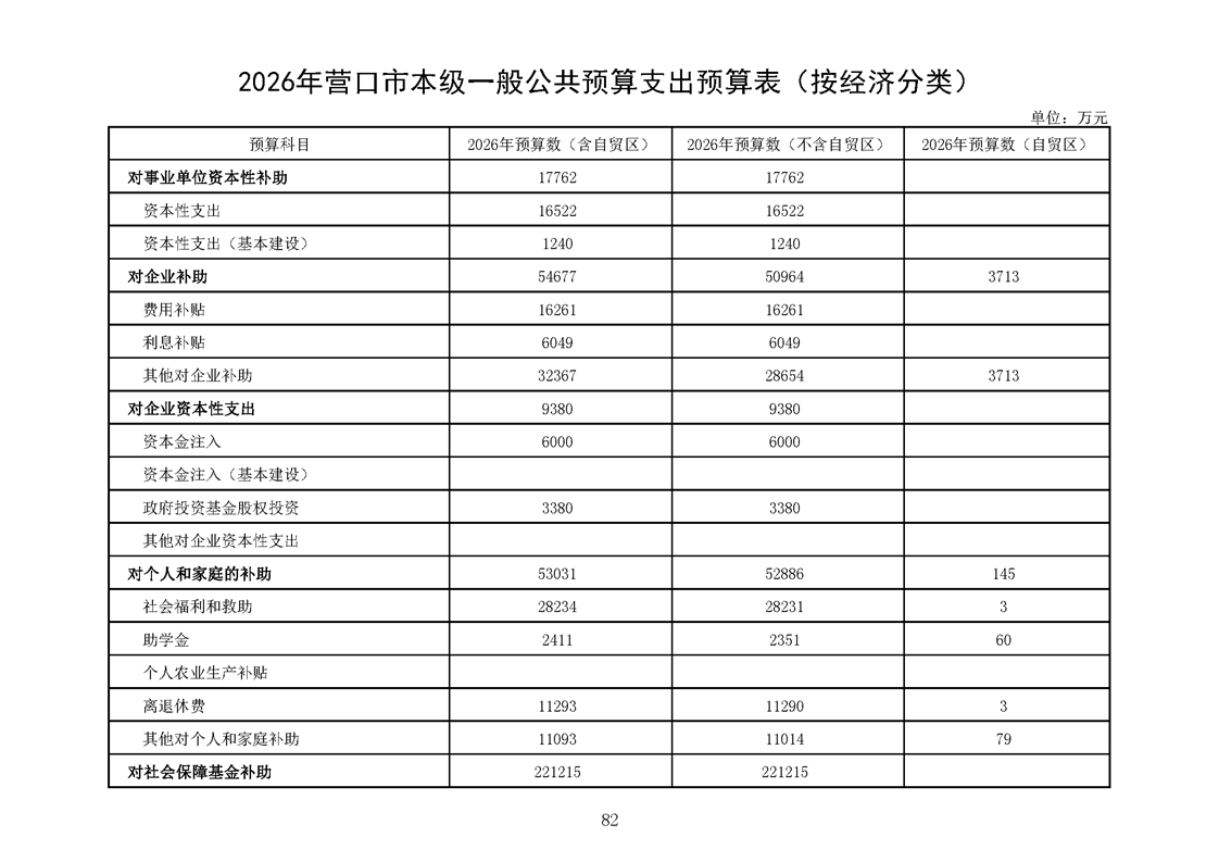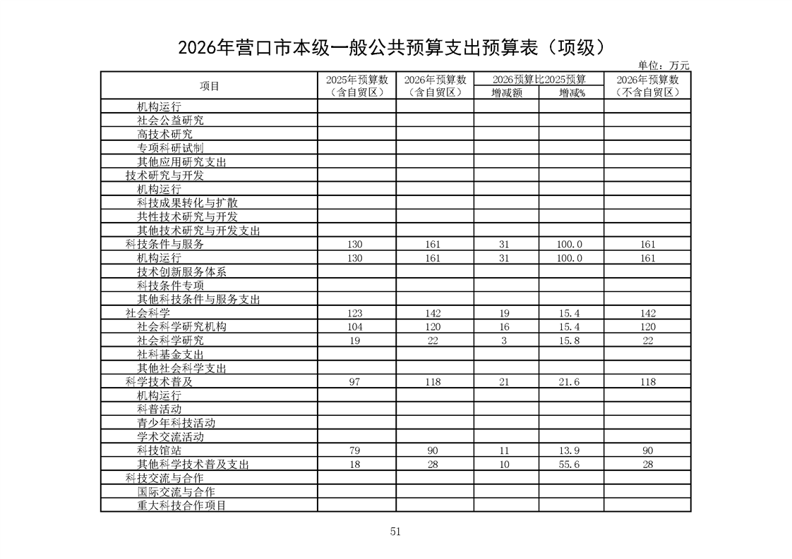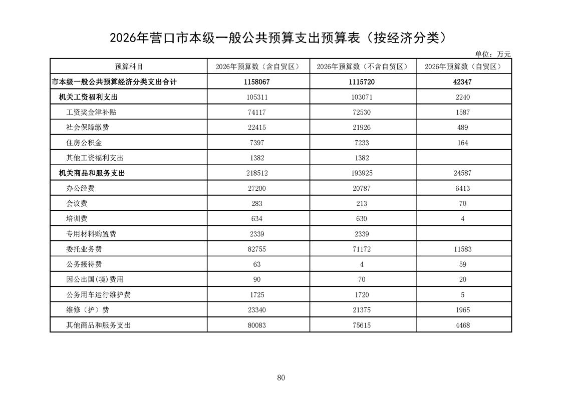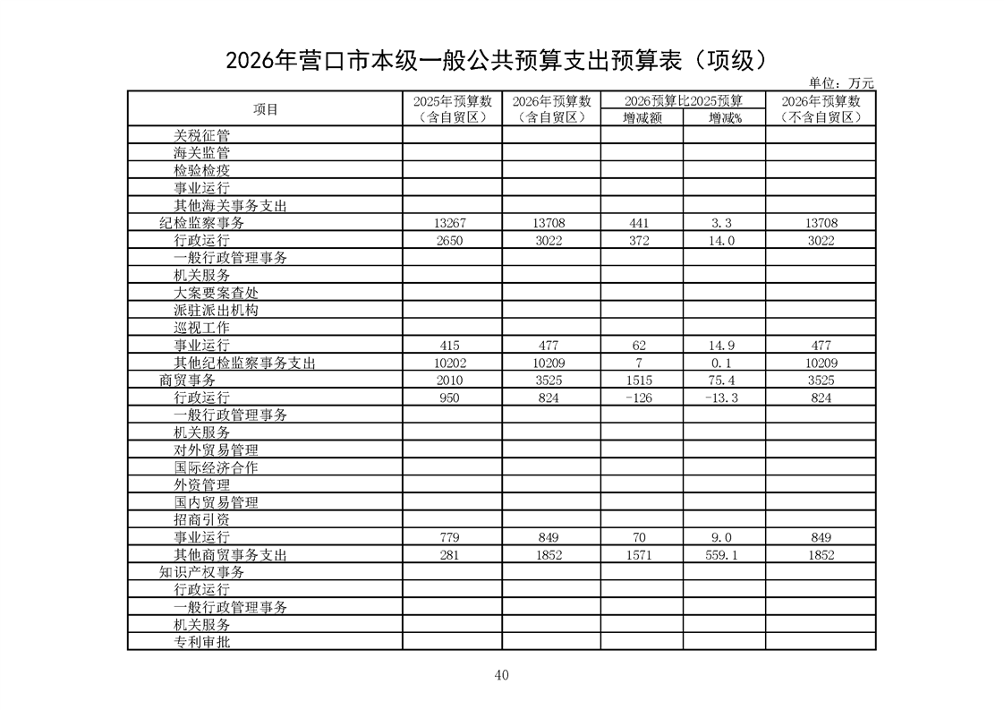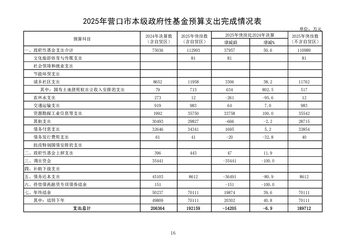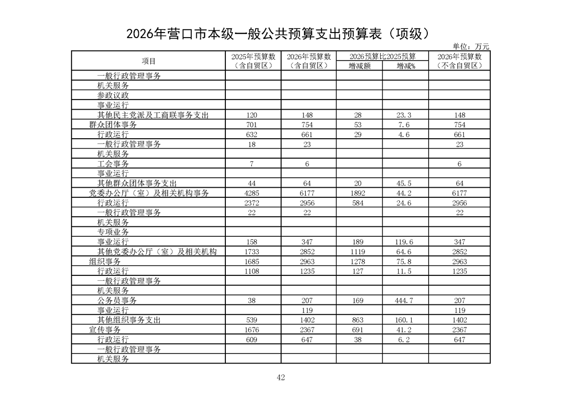 营口市2025年预算执行情况及2026年预算草案情况表