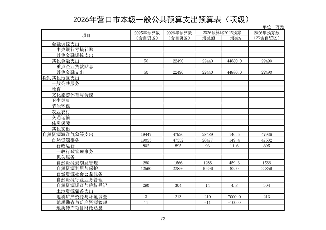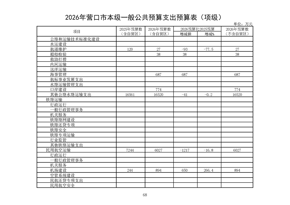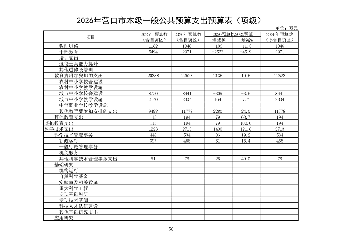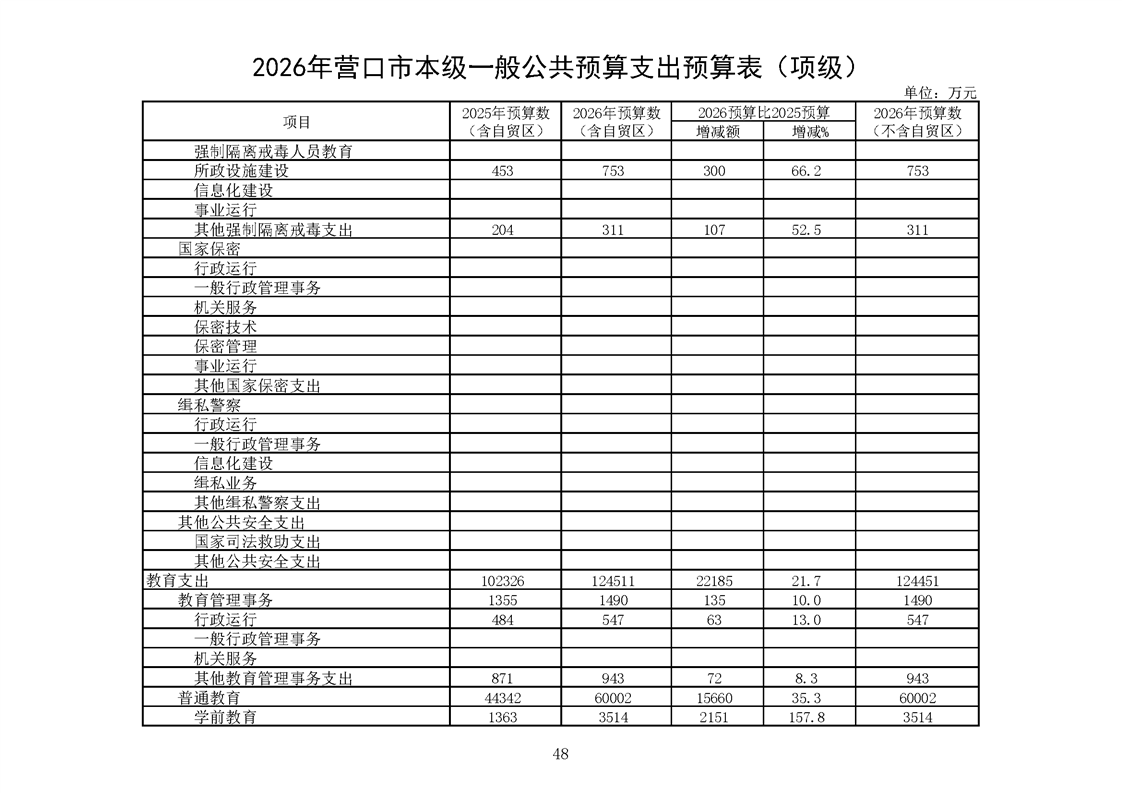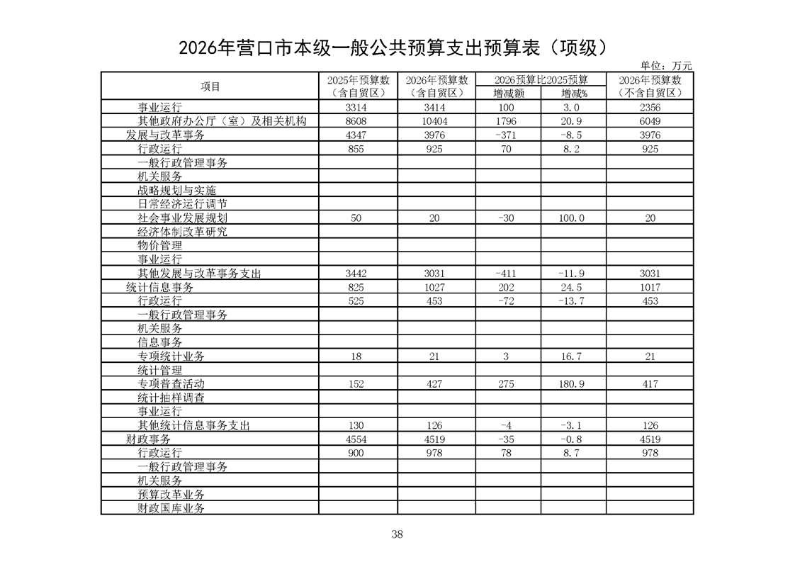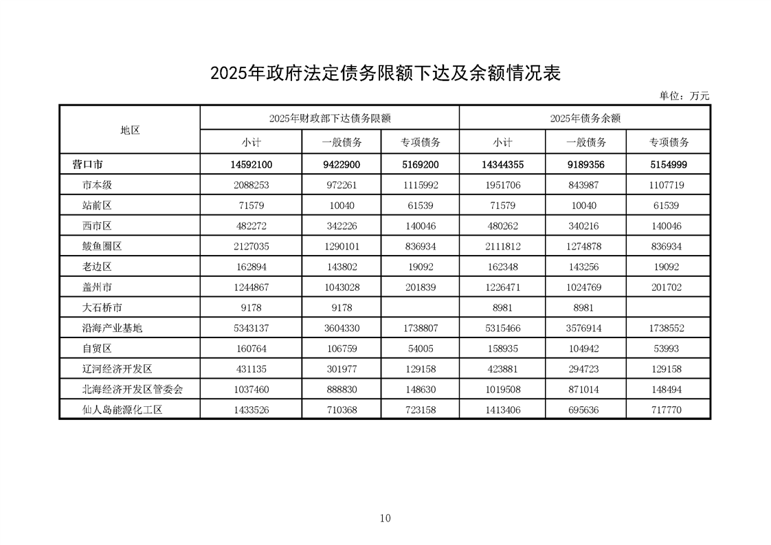 营口市2025年预算执行情况及2026年预算草案情况表
