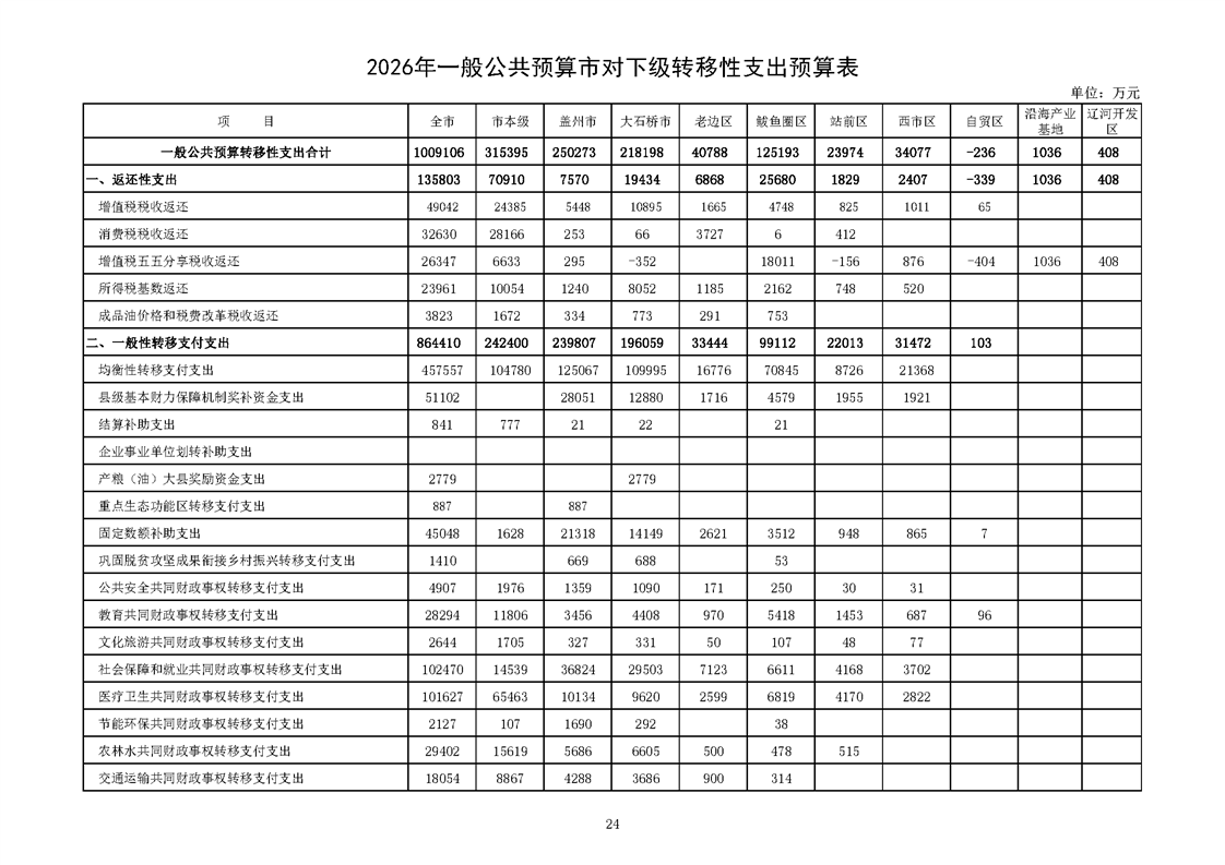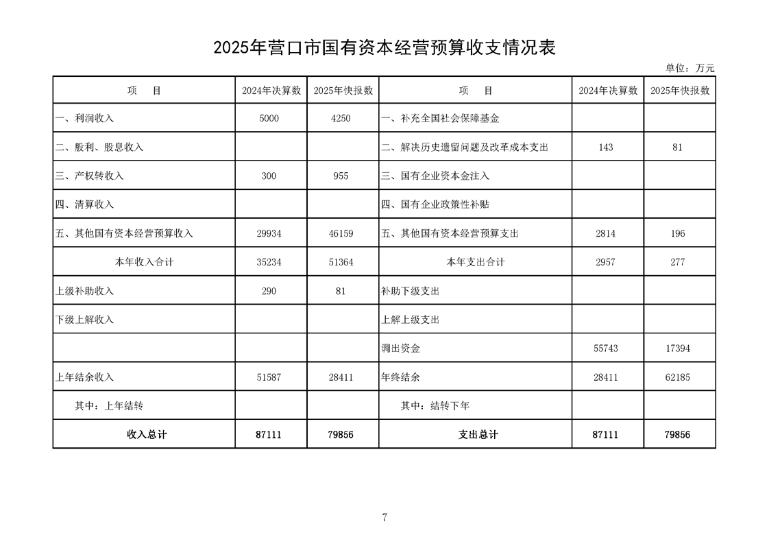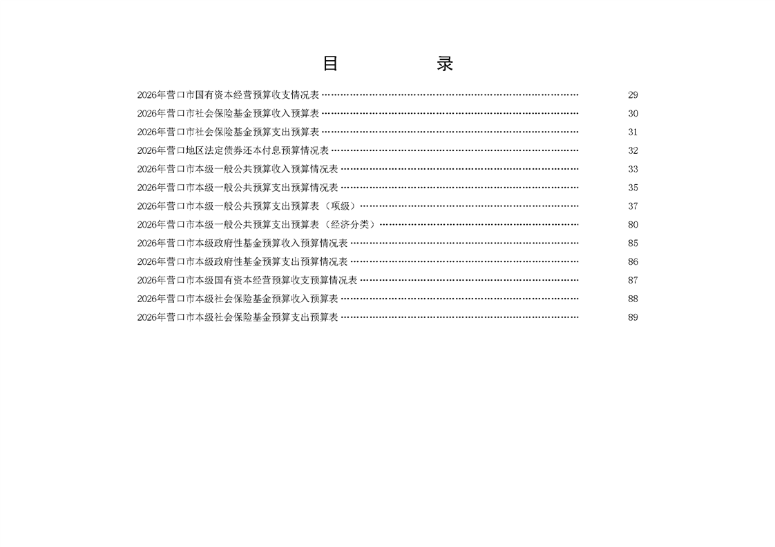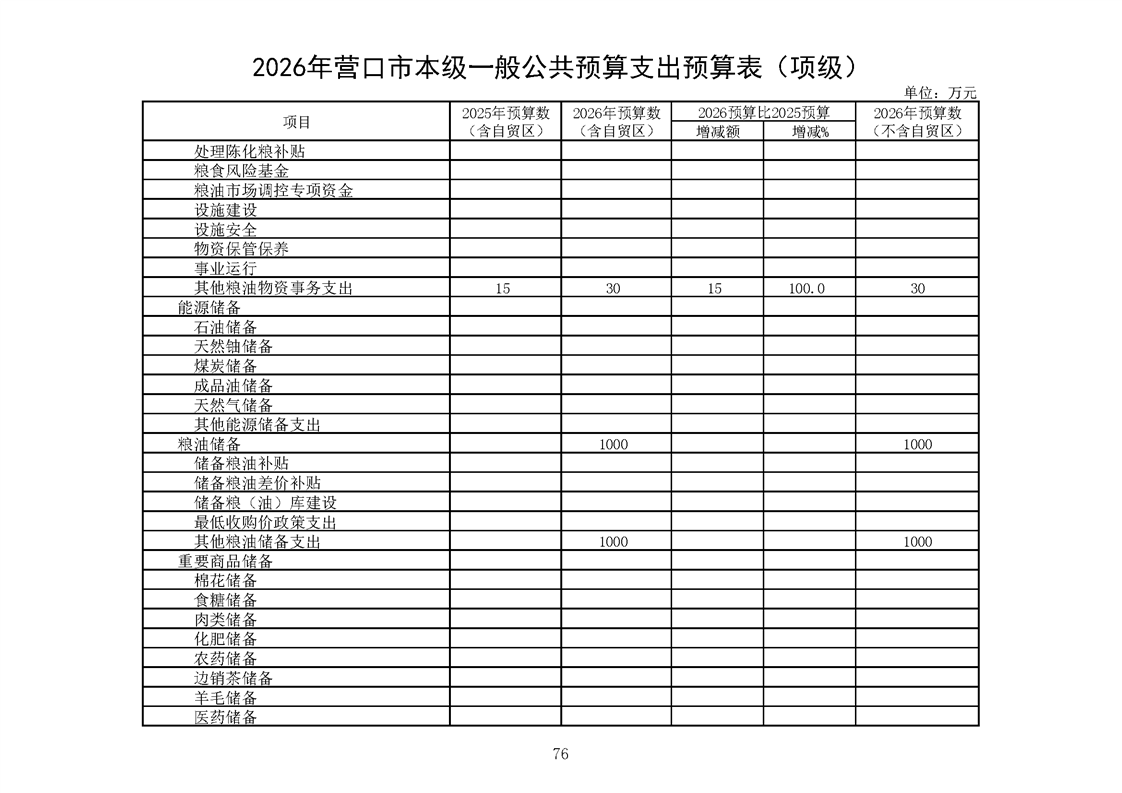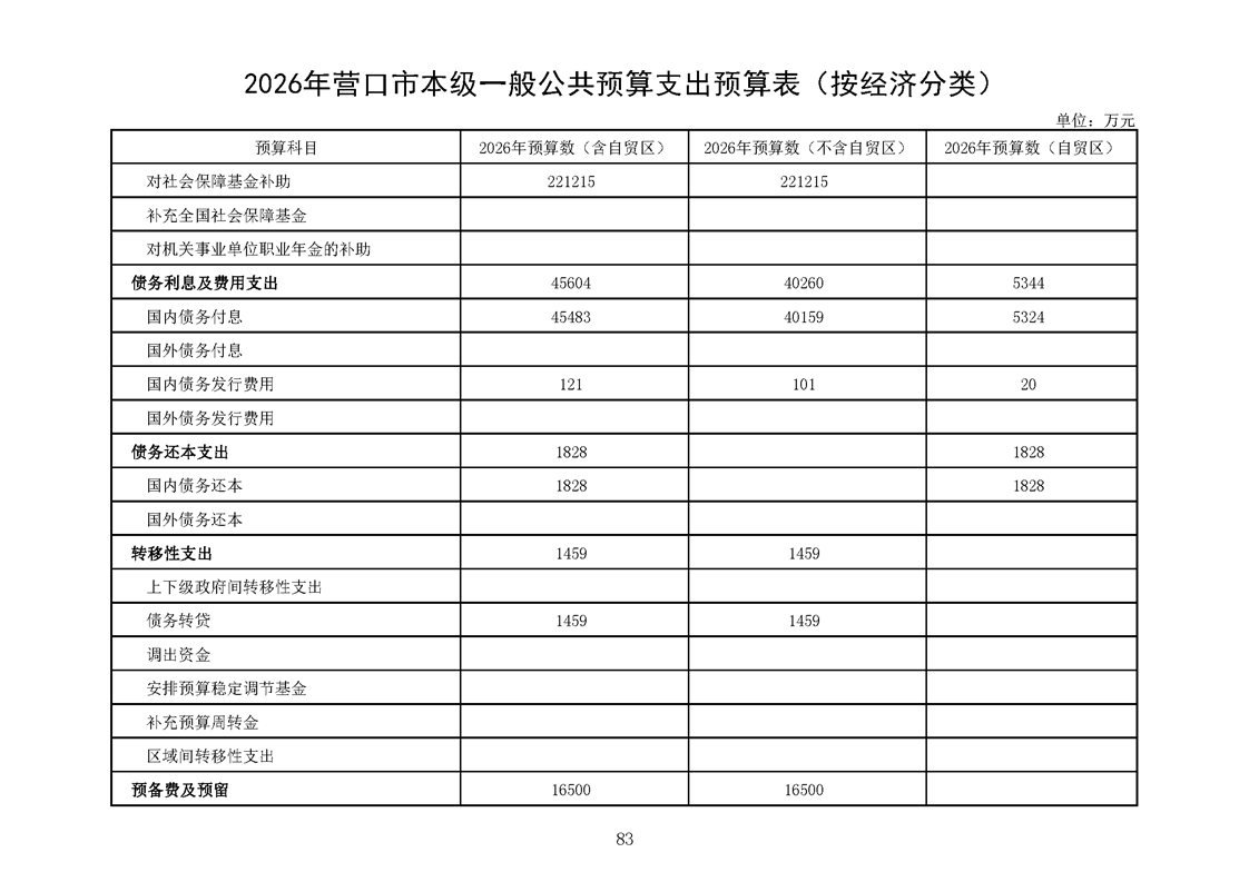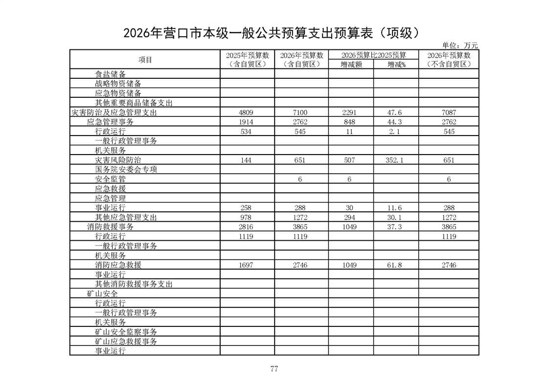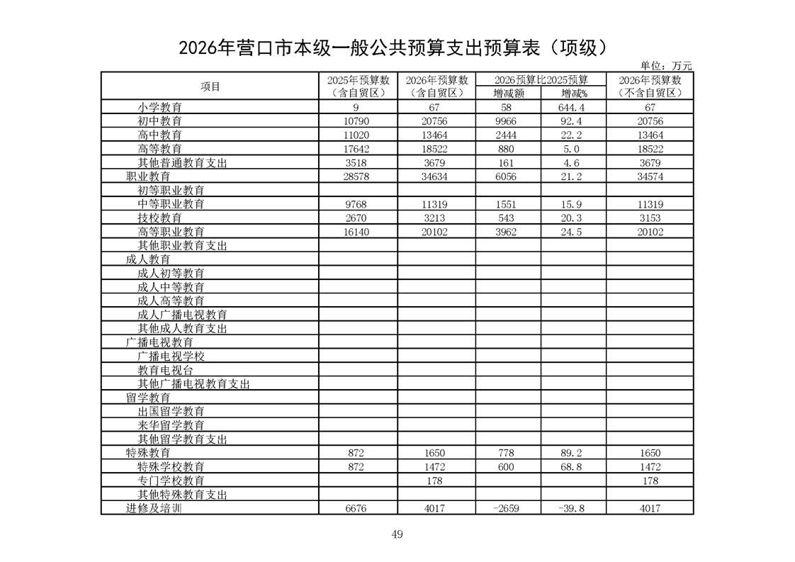 营口市2025年预算执行情况及2026年预算草案情况表